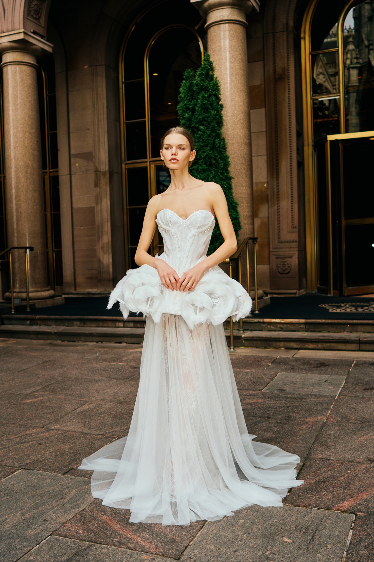 Try on the Raf gown in person. Our expert stylists will help you experience the magic of this stunning design.